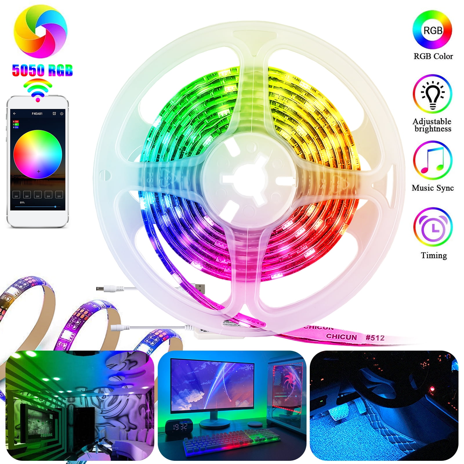- 5M Smart Led Strip Light 5050 Rgb Color Changing App ... : Synchronous Switch, Color Changes, The Scene Mode Selection And Timer Will Be Realized Through Group.